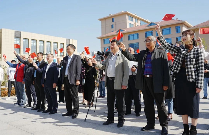 典禮開始前,明月海藻集團的員工代表和來自新區(qū)青少年活動中心的孩子們,以一曲《我和我的祖國》快閃表演營造了熱烈的氛圍?,F(xiàn)場紅歌嘹亮,余音繞梁,表演者們以飽滿深情的紅歌演唱表達對祖國的愛,祝福祖國繁榮富強。
