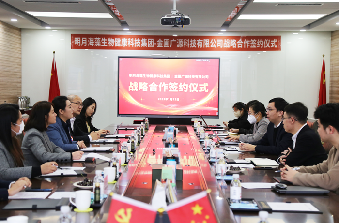 2023年1月12日,青島明月海藻生物健康科技集團(tuán)與青島金圃廣源科技有限公司在明月海藻世界就長(zhǎng)期合作進(jìn)行座談交流,并舉行戰(zhàn)略合作簽約儀式。