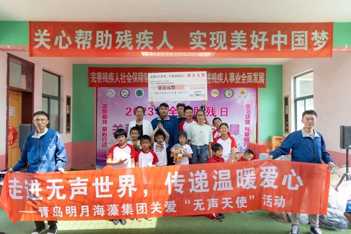 為關(guān)愛殘障兒童,積極承擔(dān)社會(huì)責(zé)任,5月20日,在第33個(gè)“全國(guó)助殘日”來臨之際,青島明月海藻集團(tuán)團(tuán)委組織部分青年志愿者代表前往青島西海岸新區(qū)東方聾兒語訓(xùn)中心,開展以“走進(jìn)無聲世界,傳遞溫暖愛心”為主題的助殘活動(dòng)。