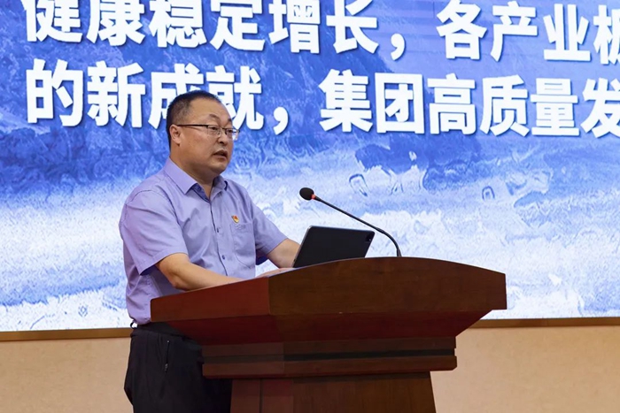 會(huì)議伊始,與會(huì)人員首先觀看了2023年《凝聚非凡偉力,堅(jiān)守初心前行》半年總結(jié)主題視頻,之后,集團(tuán)總裁劉兆志對(duì)2023年上半年經(jīng)營(yíng)情況作了全面總結(jié)。
