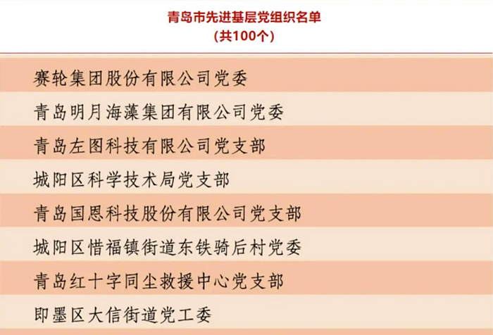 明月海藻集團(tuán)黨委榮獲“青島市先進(jìn)基層黨組織”稱號(hào)