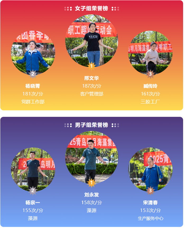 緊隨拔河比賽之后的是跳繩速度賽,男子組、女子組選手在1分鐘內(nèi)展開激烈角逐。賽場(chǎng)上,選手們身姿矯健,跳繩翻飛如蝶,現(xiàn)場(chǎng)歡呼不斷。最終,男子組以158次/分鐘的成績(jī)問(wèn)鼎冠軍,女子組則以187次/分鐘的優(yōu)異成績(jī)拔得頭籌。