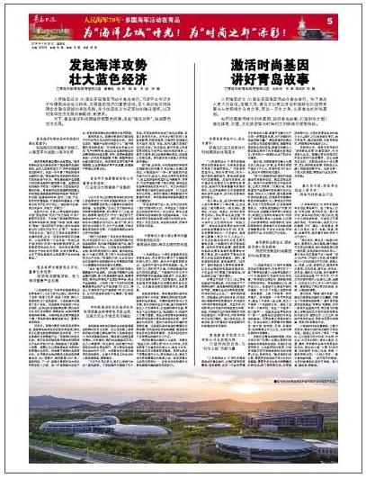 張國(guó)防董事長(zhǎng)在采訪中說(shuō),習(xí)近平總書(shū)記出席在青島舉行的慶祝人民海軍成立70周年多國(guó)海軍活動(dòng),讓我倍感自豪、備受鼓舞??倳?shū)記關(guān)于海洋命運(yùn)共同體的重要闡釋?zhuān)艺J(rèn)真學(xué)習(xí)了幾遍,感到心潮澎湃、激動(dòng)萬(wàn)分。作為一家正致力于海洋生物產(chǎn)業(yè)的企業(yè),我們將以此次活動(dòng)和總書(shū)記重要講話為動(dòng)力,鼓足干勁,努力提升自主創(chuàng)新水平、壯大產(chǎn)業(yè)規(guī)模,為推動(dòng)青島藍(lán)色經(jīng)濟(jì)發(fā)展、打造國(guó)際海洋名城作出更大的貢獻(xiàn)!