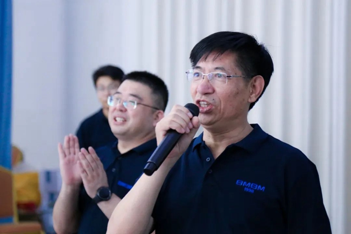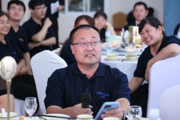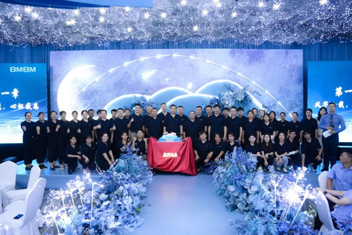 講話結(jié)束后,集團(tuán)領(lǐng)導(dǎo)與明月醫(yī)材全體員工合影留念并切蛋糕、觀看文藝演出。