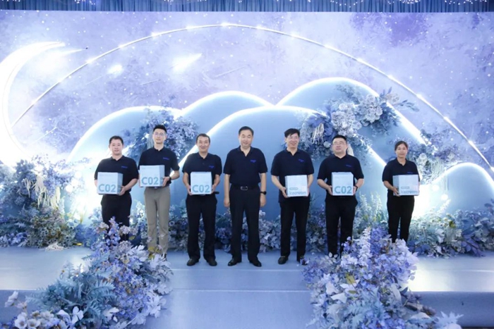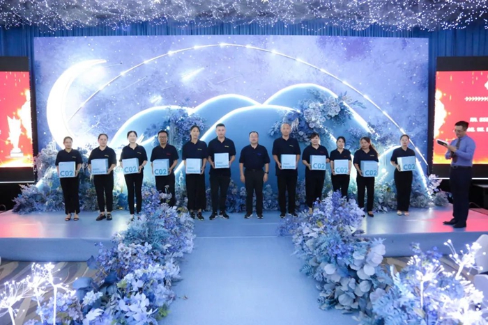 慶典上,明月海藻集團(tuán)總裁劉兆志為明月醫(yī)材十年老員工頒獎(jiǎng)。董事局主席張國防為明月醫(yī)材“雙十周年”(進(jìn)集團(tuán)10年以上,同時(shí)進(jìn)生物醫(yī)用材料也10年以上)老員工頒獎(jiǎng)并致辭。